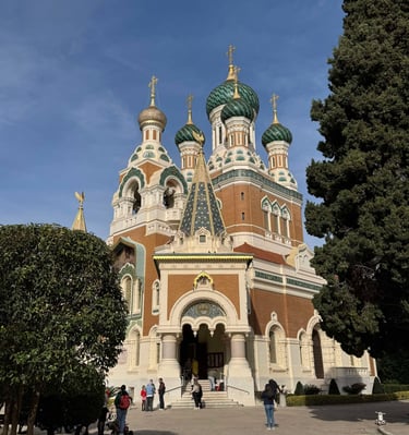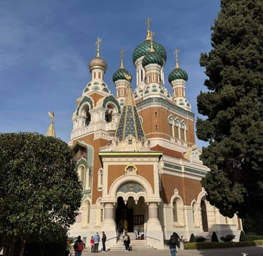 La cathédrale Saint-Nicolas à Nice est un chef-d'œuvre architectural qui incarne la richesse du patrimoine religieux de la ville. Construite entre 1903 et 1912, elle se distingue par son style russophile, inspiré des églises orthodoxes de Russie. Ses dômes colorés et ses fresques vibrantes attirent de nombreux visiteurs, faisant d'elle l'une des principales attractions de Nice.