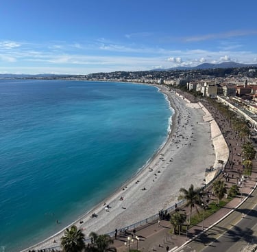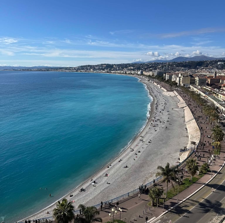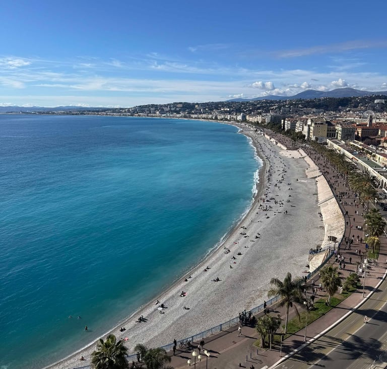 Les cafés et restaurants qui bordent la promenade invitent à déguster des spécialités locales tout en se laissant bercer par le doux bruit des vagues. La promenade des Anglais est également le théâtre d'événements culturels et festifs, faisant d'elle un symbole de l'art de vivre niçois. Que ce soit à pied, à vélo ou en rollers, chacun y trouve son bonheur, dans ce cadre idyllique où la mer et le soleil s'entrelacent pour offrir une expérience inoubliable.