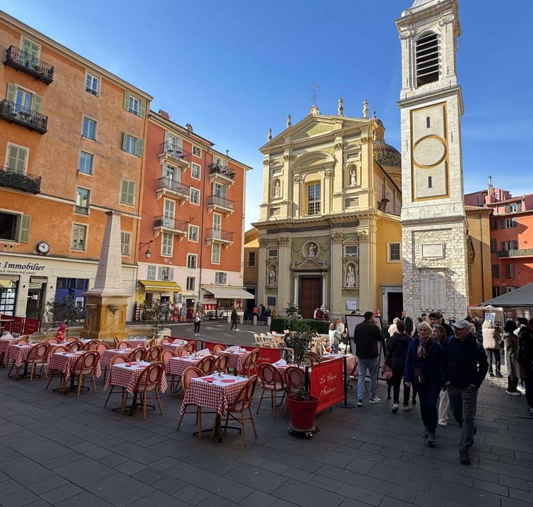 Les visiteurs peuvent découvrir des trésors architecturaux, tels que la cathédrale Sainte-Réparate, qui offre un magnifique exemple du baroque niçois. Les terrasses de cafés invitent à savourer un café au soleil, tandis que le parfum des spécialités locales, comme la socca et la pissaladière, flotte dans l'air. La vieille ville est un lieu où le passé se mêle à la vie moderne, créant une atmosphère chaleureuse et accueillante pour les habitants et les touristes.